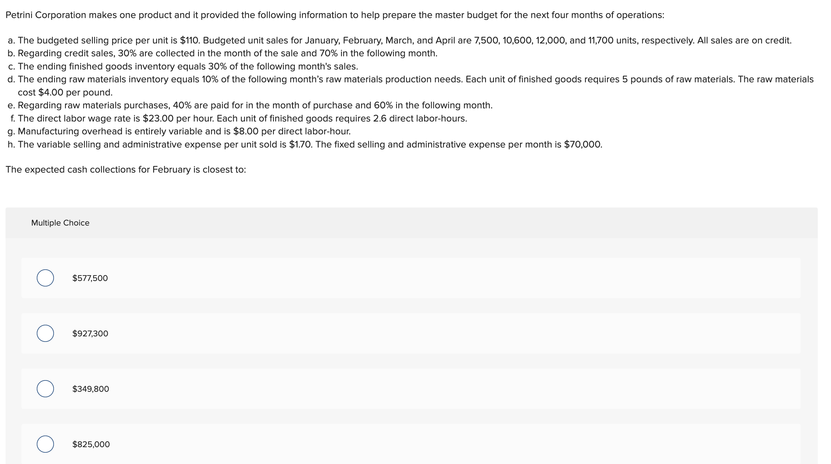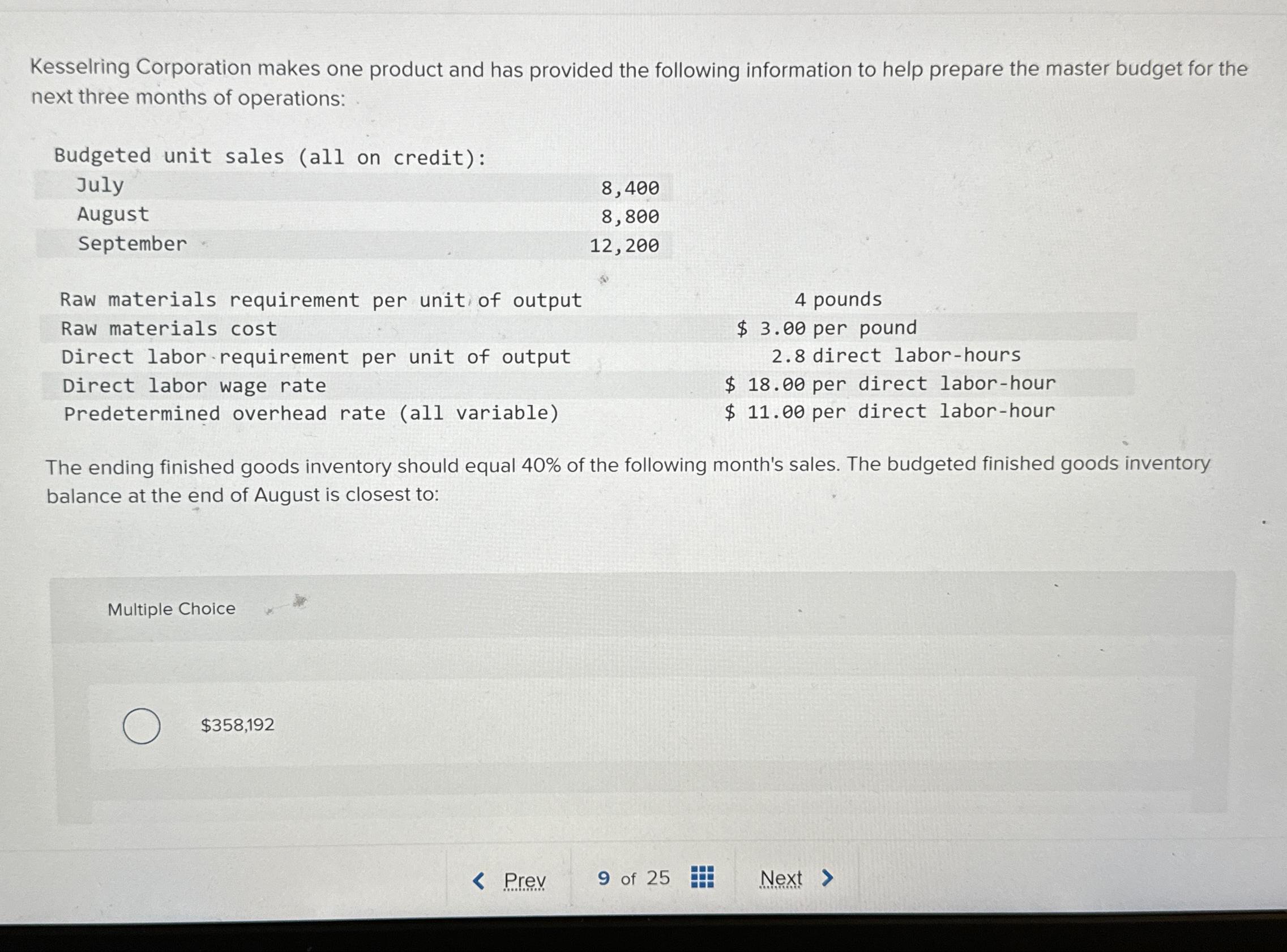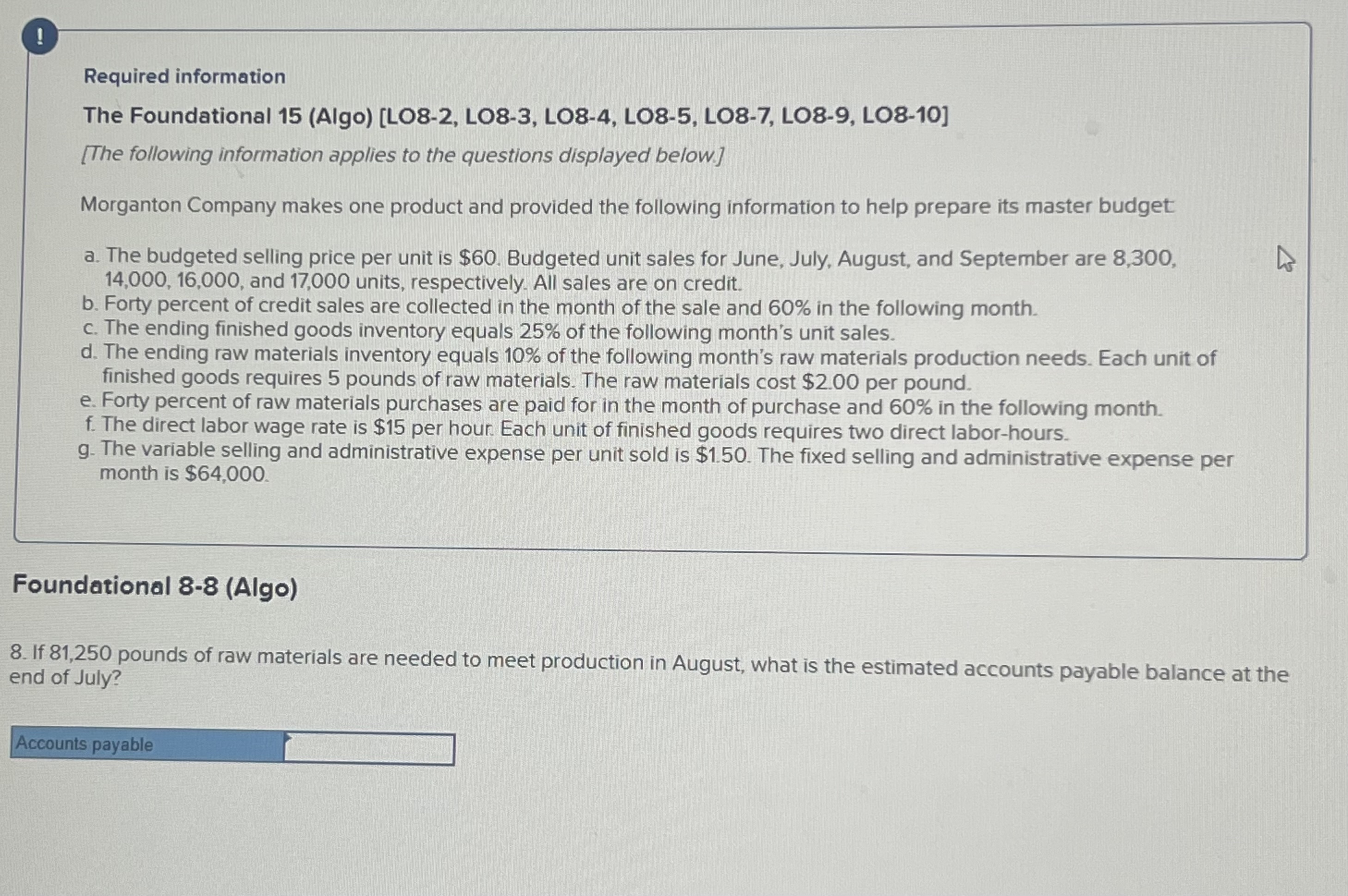 Webmorganton company makes one product and it provided the following information to help prepare the master budget for its first four months of operations: Webjul 4, 2019 · morganton company makes one product and it provides the following information to help prepare the master budget for its first four months of operations: Webthis means that morganton company plans to sell 15,000 units of its product in july. Calculate the total direct labor hours required for july's production: Websolved by verified expert. Estimated finished goods inventory balance, july: To solve for the estimated finished goods. Webfeb 10, 2023 · morganton company makes one product and it provided the following information to help prepare the master budget: The budgeted selling price per unit is. Morganton company makes one product and it provided the following information to help prepare the master budget: the budgeted selling price per unit is. Webmorganton company makes one product and it provided the following information to help prepare the master budget: The budgeted selling price per unit is $70. Webmorganton company makes one product and it provided the following information to help prepare the master budget for its first four months of operations: Webmorganton company makes one product and it provided the following information to help prepare the master budget: The budgeted selling price per unit is $70.
