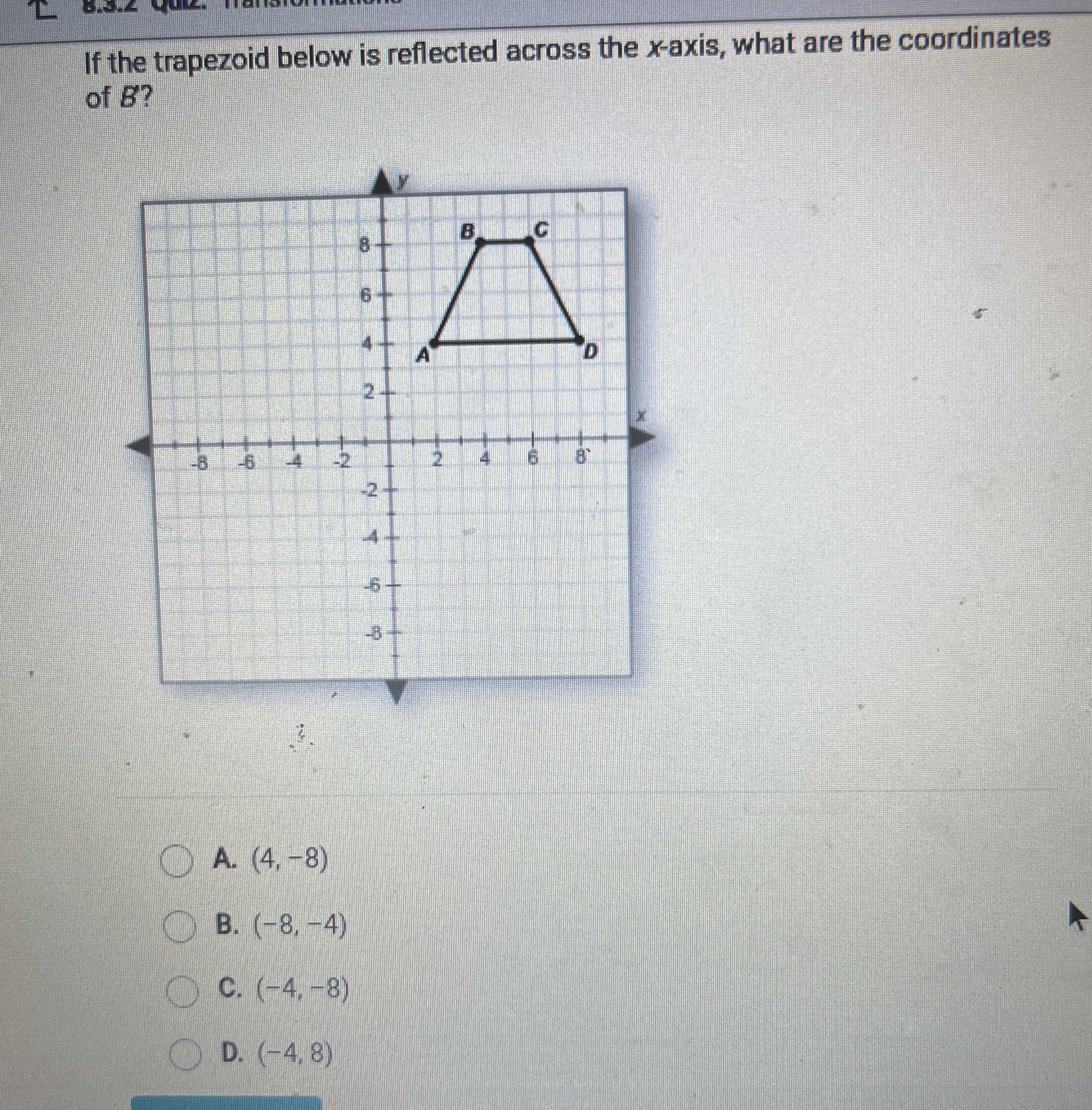 Trapezoid d is in quadrant 4 and is rotated. Which figure represents the image of the reflection? Which figure represents the image of the reflection? Which figure represents the image of the reflection? Web3 days ago · trapezoid l'm'n'p' was constructed using trapezoid lmnp. For the transformation to be a translation, which statements must be true?
